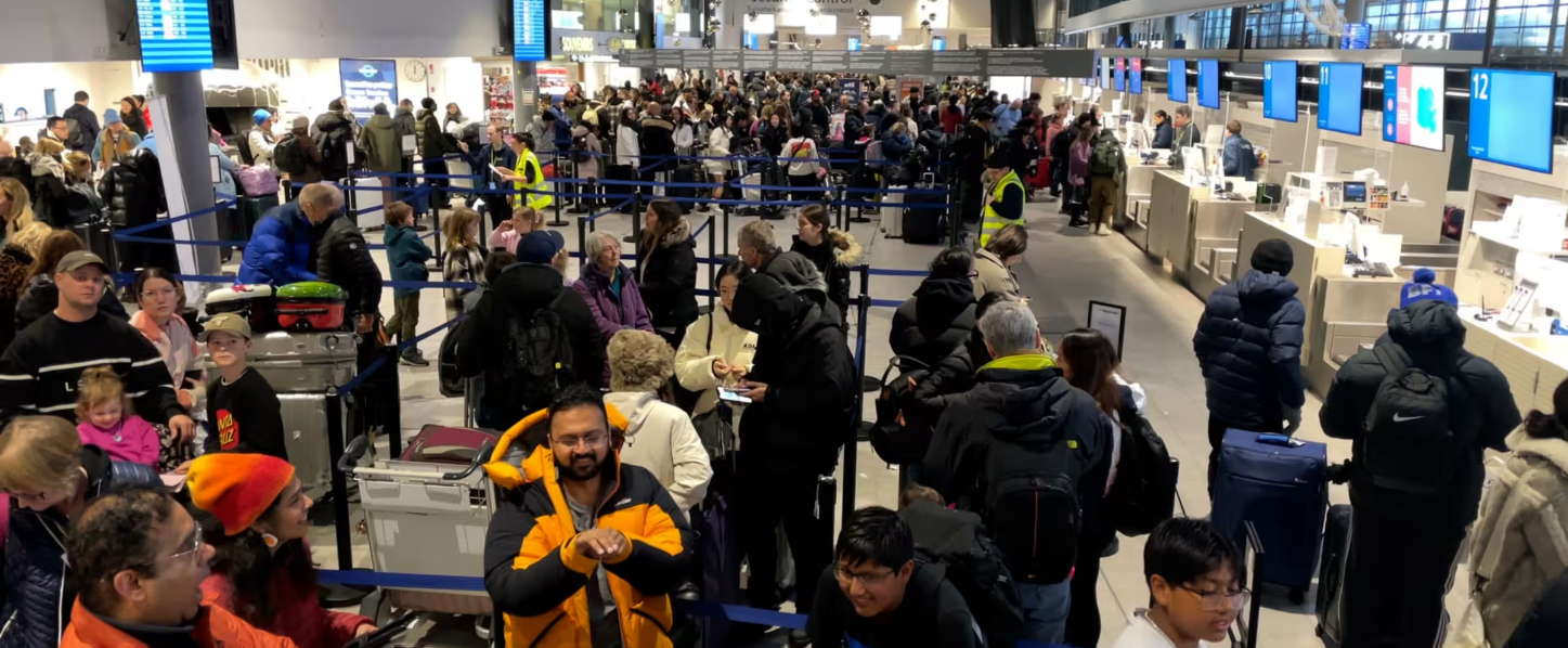 Rovaniemellä on takanaan ennätyksellinen joulukuu ja ennätyksellinen vuosi matkailun osalta, mikä on näkynyt myös Rovaniemen lentokentällä. Kuva: Jyri Tynkkynen / Yle